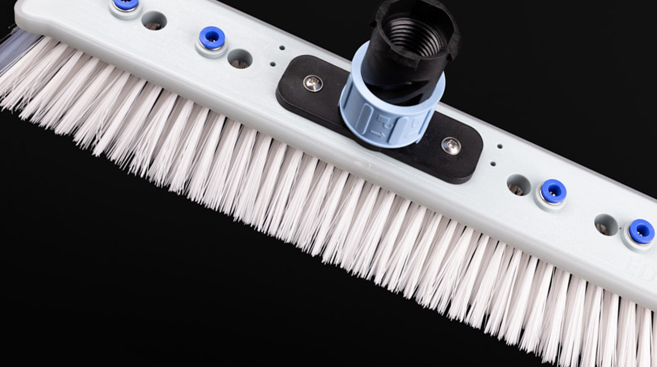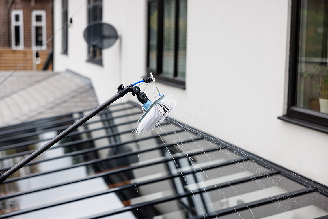 Dedicated rinse bars, mini pads and mini brushes tackle solar panels, conservatory roofs, Velux® windows and stubborn marks with ease.